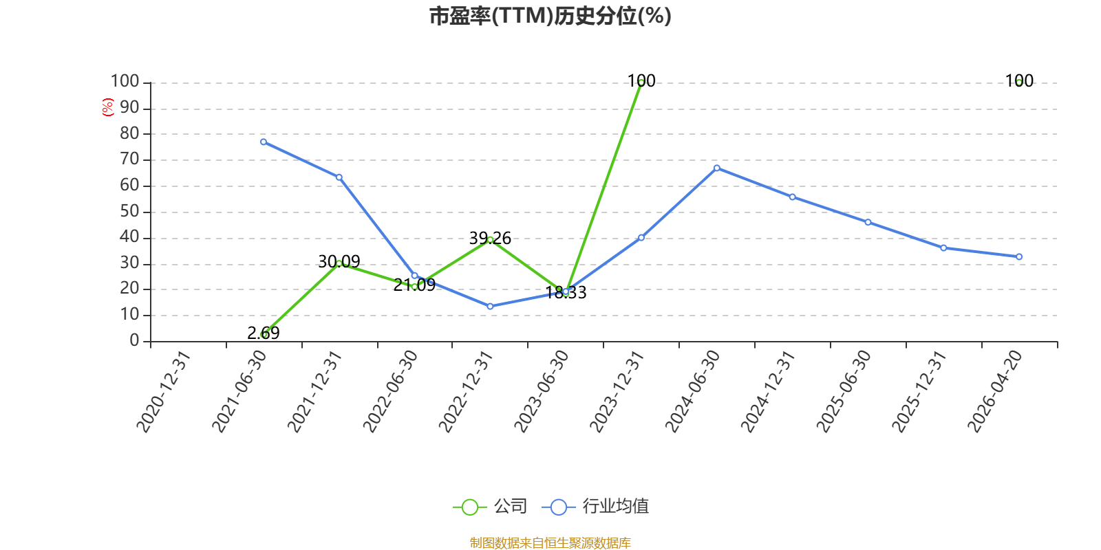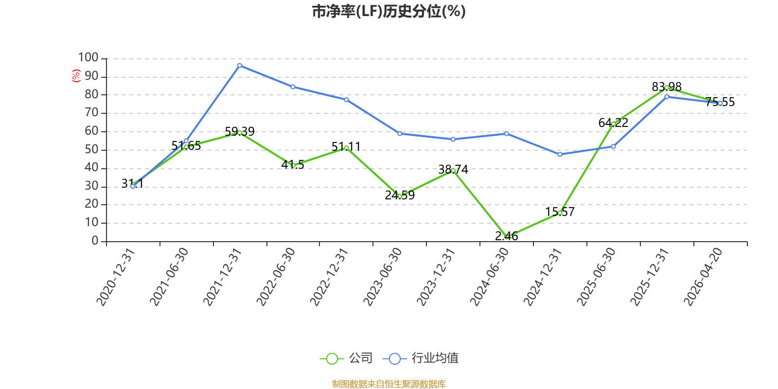 市盈率、市净率为负时,不显示当期分位数,会导致折线图中断。