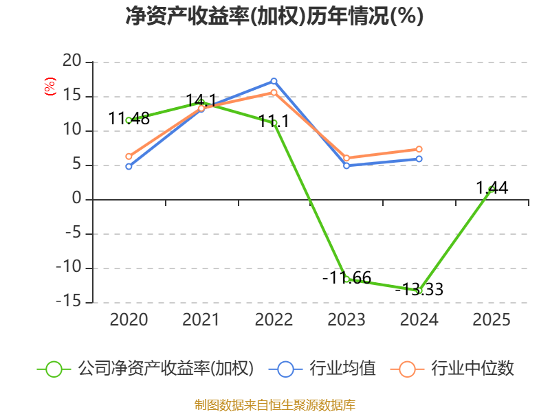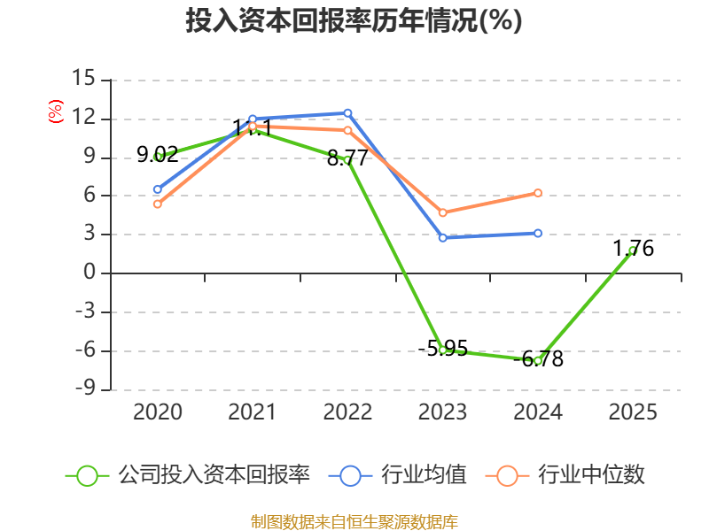 数据显示,2025年公司加权平均净资产收益率为1.44%,较上年同期上升14.77个百分点。公司2025年投入资本回报率为1.76%,较上年同期上升8.54个百分点。