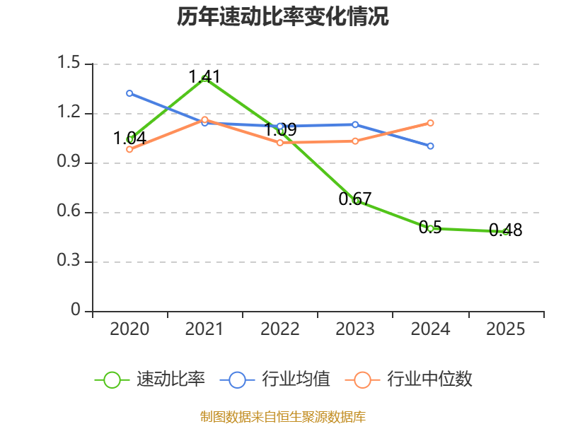 2025年,公司流动比率为0.71,速动比率为0.48。