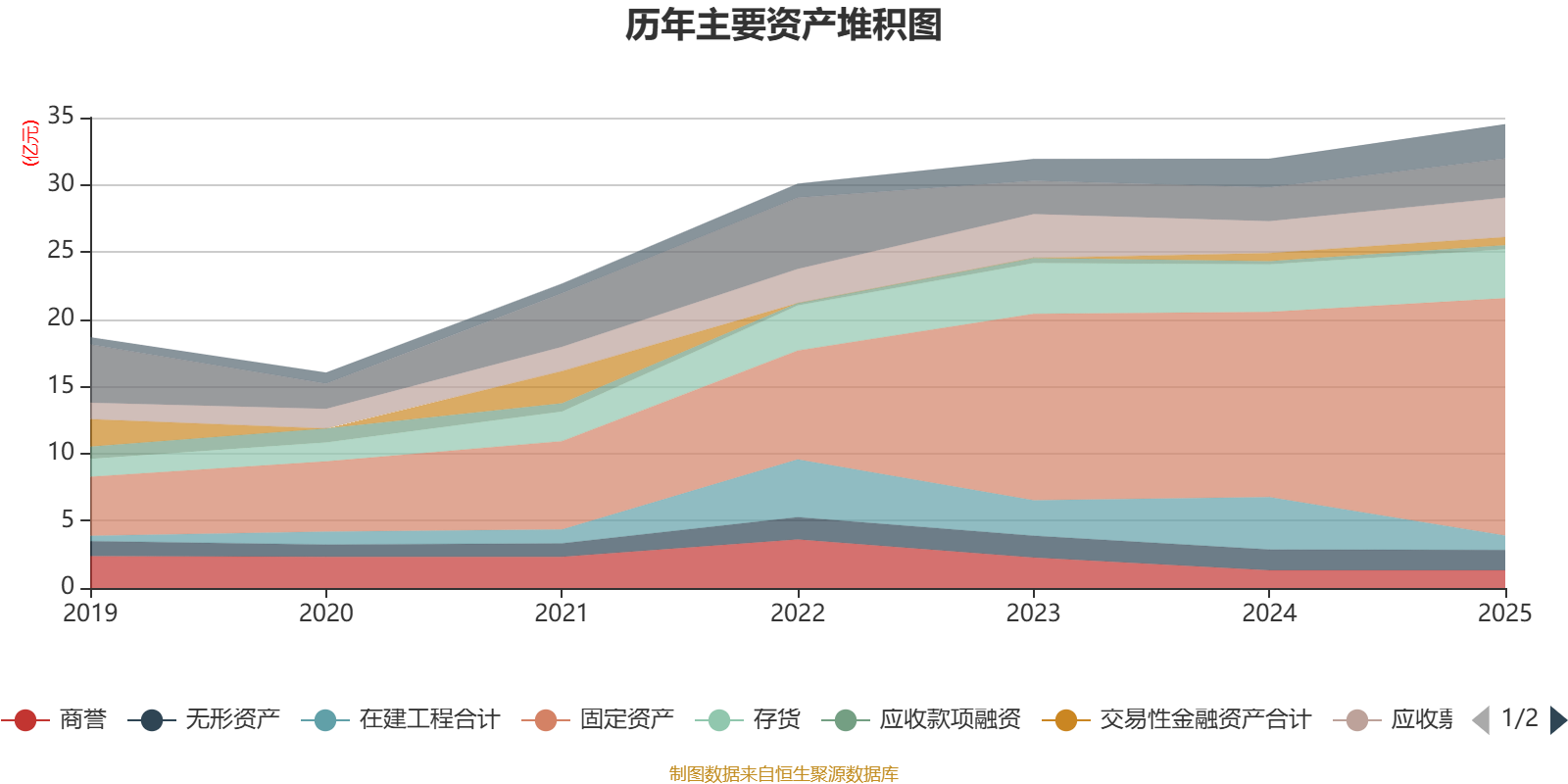 资产重大变化方面,截至2025年末,公司在建工程合计较上年末减少72.29%,占公司总资产比重下降9.1个百分点;固定资产较上年末增加28.26%,占公司总资产比重上升8.07个百分点;应收票据及应收账款较上年末增加23.24%,占公司总资产比重上升1.05个百分点;货币资金较上年末增加16.65%,占公司总资产比重上升0.63个百分点。