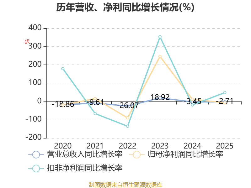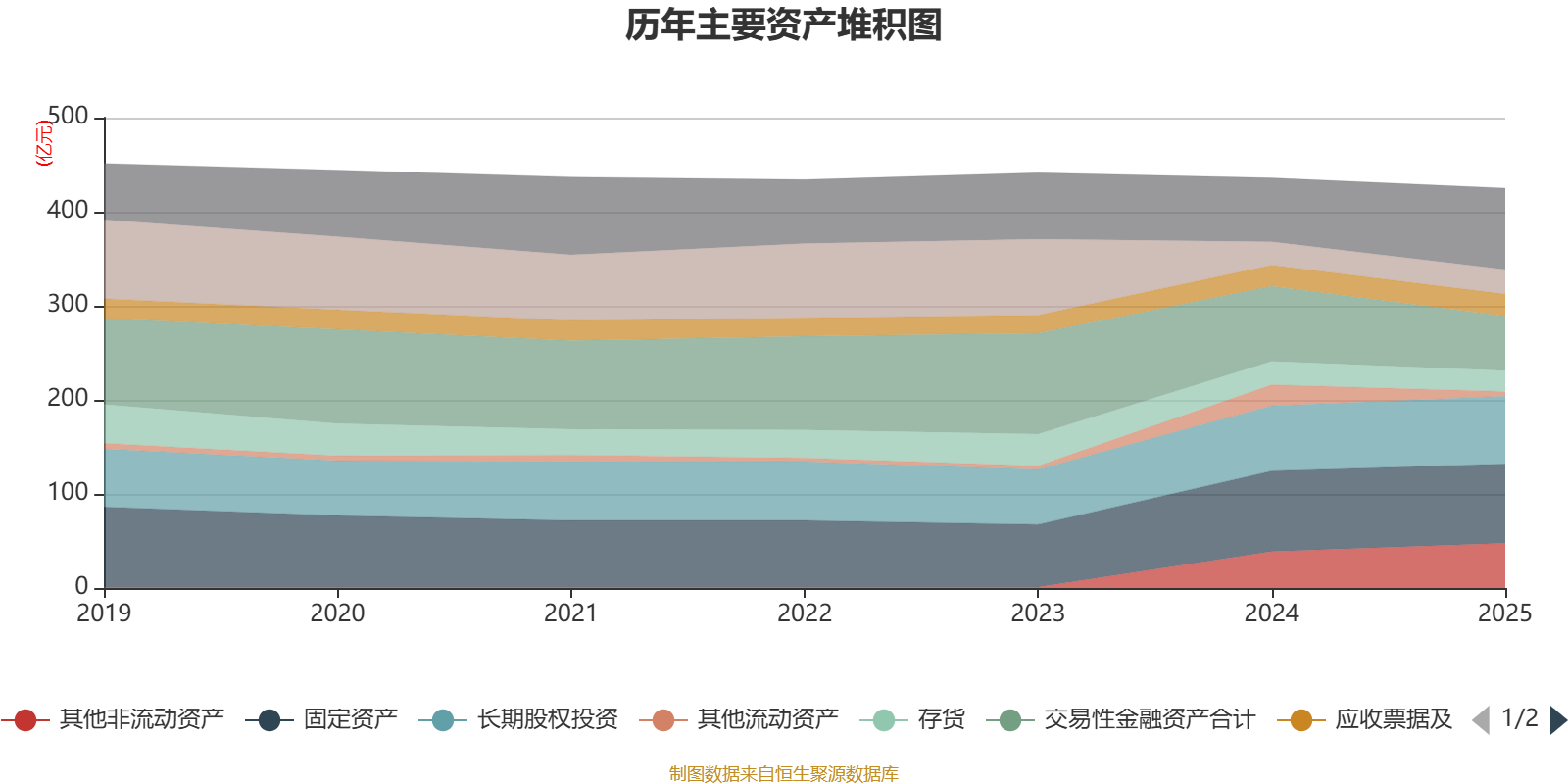 资产重大变化方面,截至2025年末,公司交易性金融资产合计较上年末减少27.28%,占公司总资产比重下降4.66个百分点;一年内到期的非流动资产较上年末增加7589.96%,占公司总资产比重上升3.95个百分点;其他流动资产较上年末减少77.47%,占公司总资产比重下降3.94个百分点;其他非流动资产较上年末增加22.47%,占公司总资产比重上升2.28个百分点。