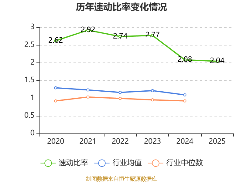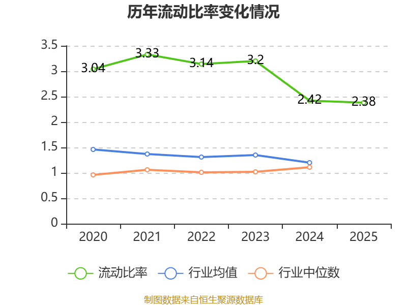 2025年,公司流动比率为2.38,速动比率为2.04。