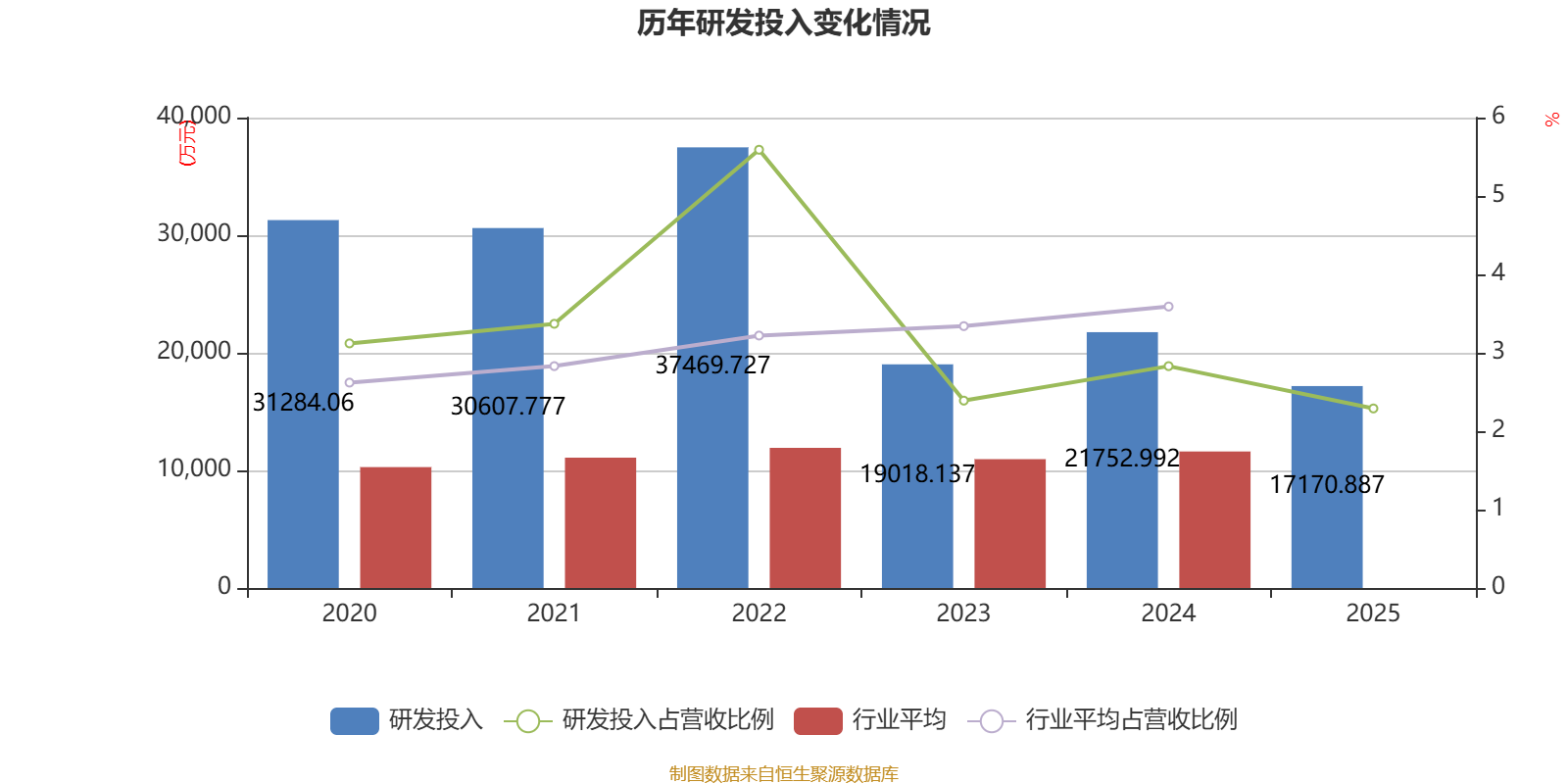 2025年全年,公司研发投入金额为1.72亿元,同比下降21.06%;研发投入占营业收入比例为2.29%,相比上年同期下降0.54个百分点。此外,公司全年研发投入资本化率为0%。