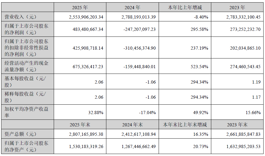 根据冰川网络公告,2025年营业收入25.54亿元,同比下降8.40%;归母净利润4.83亿元,同比扭亏为盈,上年同期为亏损2.47亿元;扣非净利润4.26亿元,同比扭亏为盈。同时,公司2025年经营性现金流净额6.75亿元,上年同期为-1.59亿元,今年转正主要为报告期支付的信息服务费减少。