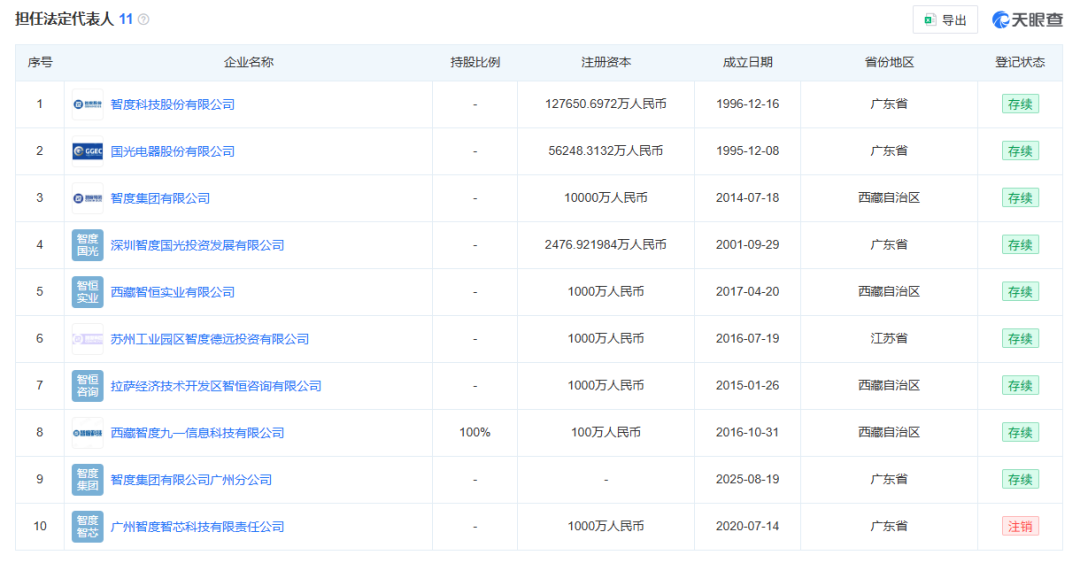 天眼查显示,陆宏达在智度集团、智度国光等公司担任法定代表人。