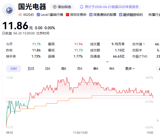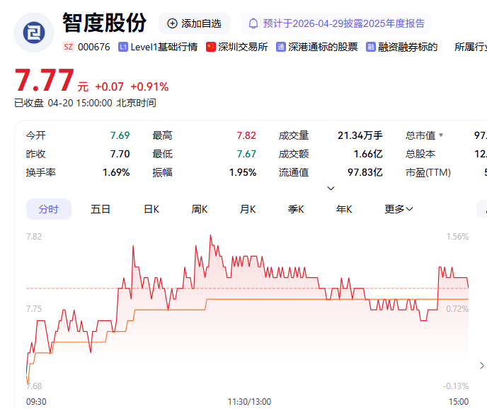 股价表现上,智度股份从2025年9月高位的12.90元/股一路下滑,截至4月20日收盘,报7.77元/股,上涨0.91%;国光电器股价也呈现整体下滑趋势,从2024年11月高位的25.15元/股,跌至4月20日收盘价11.86元/股,全天平收。