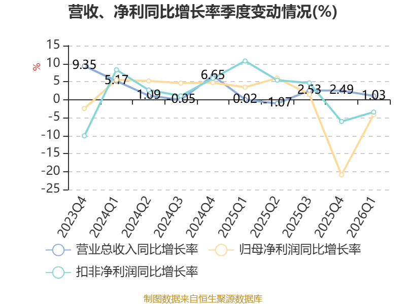 资产重大变化方面,截至2026年一季度末,公司固定资产较上年末减少3.84%,占公司总资产比重下降2.21个百分点;货币资金较上年末增加19.97%,占公司总资产比重上升1.36个百分点;应收票据及应收账款较上年末增加23.16%,占公司总资产比重上升0.95个百分点;在建工程合计较上年末增加35.01%,占公司总资产比重上升0.92个百分点。