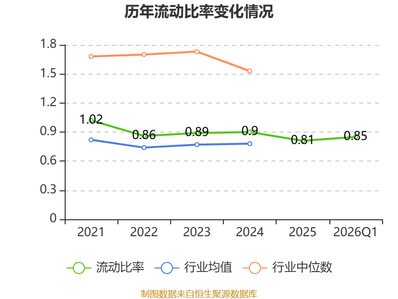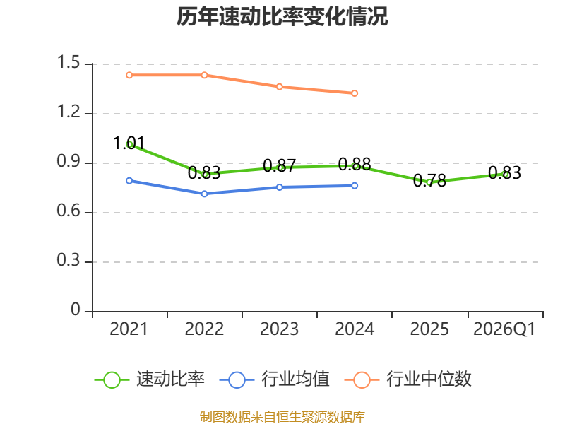 2026年第一季度,公司流动比率为0.85,速动比率为0.83。
