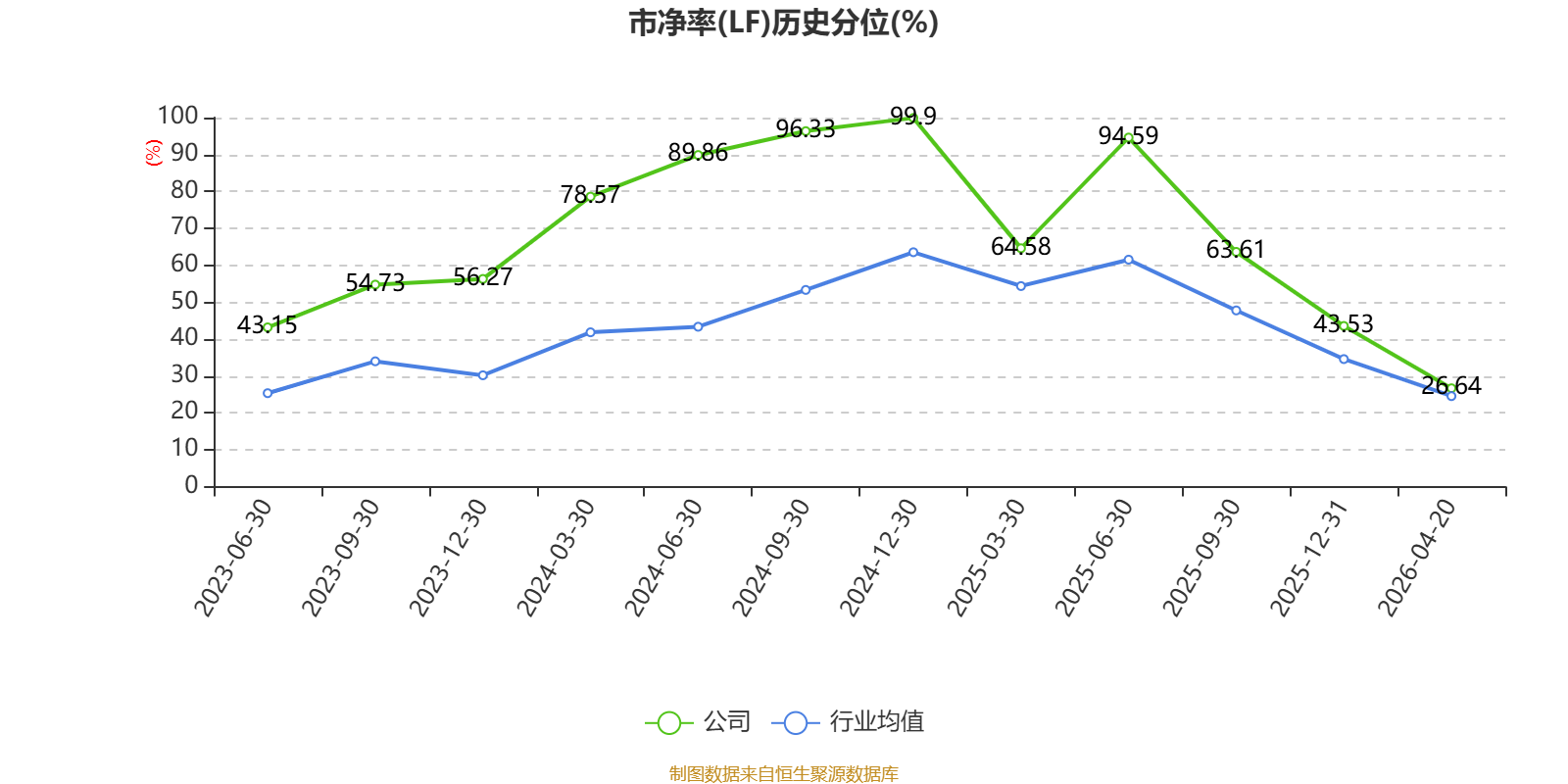 市盈率、市净率为负时,不显示当期分位数,会导致折线图中断。