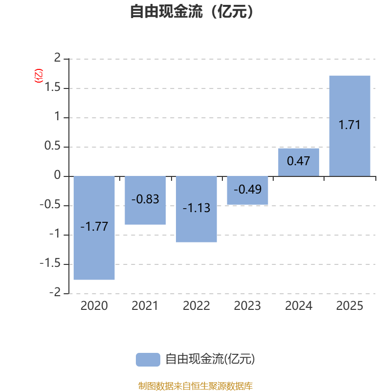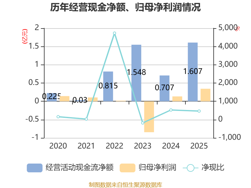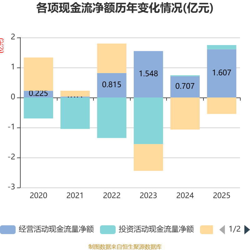 截至2025年,公司经营活动现金流净额为1.61亿元,同比增长127.28%;筹资活动现金流净额-5471.13万元,同比增加5218.95万元;投资活动现金流净额1412.49万元,上年同期为327.72万元。