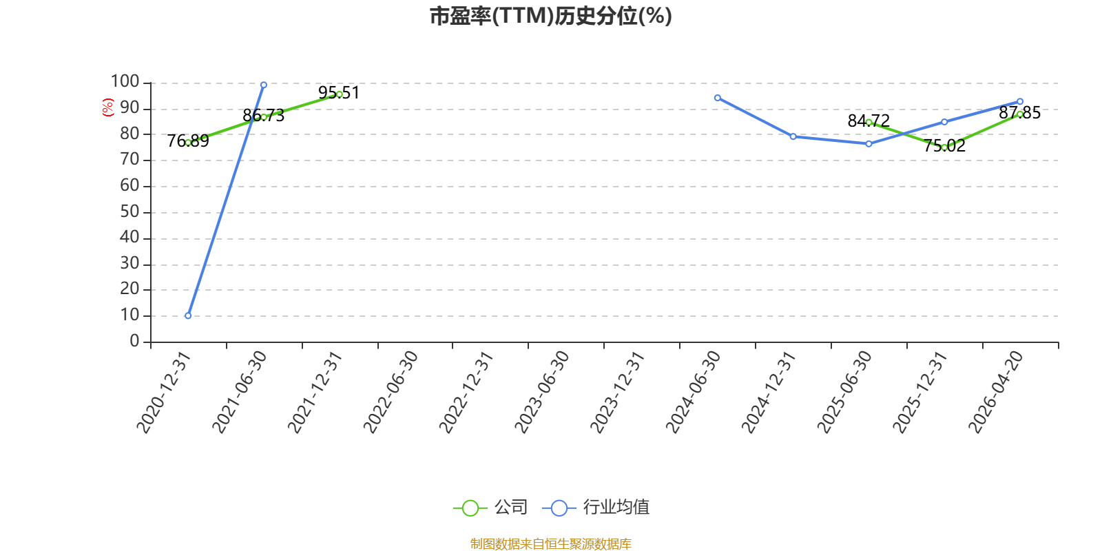 市盈率、市净率为负时,不显示当期分位数,会导致折线图中断。
