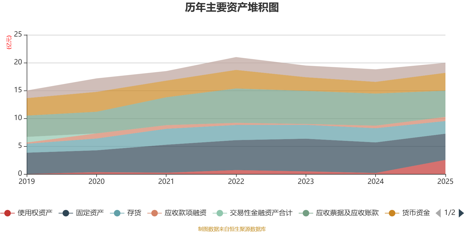 资产重大变化方面,截至2025年末,公司使用权资产较上年末增加1247.03%,占公司总资产比重上升11.67个百分点;应收票据及应收账款较上年末减少18.28%,占公司总资产比重下降7.08个百分点;固定资产较上年末减少14.31%,占公司总资产比重下降5.64个百分点;货币资金较上年末增加53.02%,占公司总资产比重上升4.9个百分点。