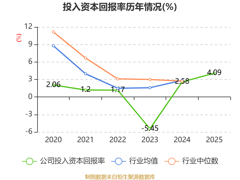 数据显示,2025年公司加权平均净资产收益率为6.99%,较上年同期上升3.96个百分点。公司2025年投入资本回报率为4.09%,较上年同期上升1.51个百分点。