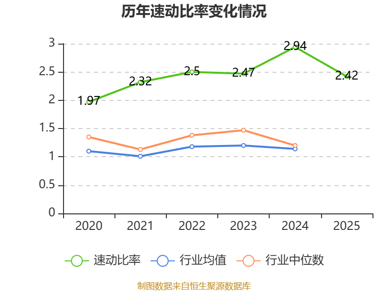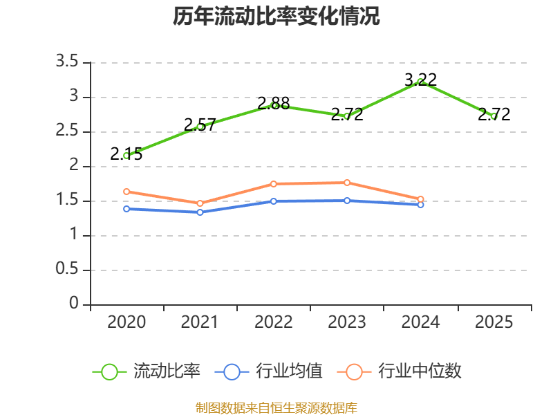 2025年,公司流动比率为2.72,速动比率为2.42。