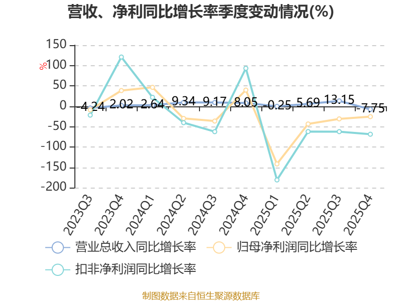 资产重大变化方面,截至2025年末,公司交易性金融资产合计较上年末增加86.92%,占公司总资产比重上升7.94个百分点;货币资金较上年末减少29.24%,占公司总资产比重下降6.48个百分点;固定资产较上年末减少6.68%,占公司总资产比重下降2.36个百分点;存货较上年末增加34.11%,占公司总资产比重上升1.62个百分点。