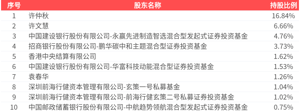 公司股东户数为3.08万户,前十大股东持股数量为1.33亿股,占总股本比例为39.21%,前十大股东持股情况如下: