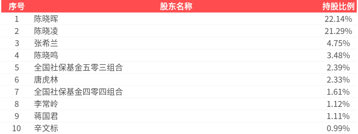 公司股东户数为1.74万户,前十大股东持股数量为1.02亿股,占总股本比例为61.22%,前十大股东持股情况如下: