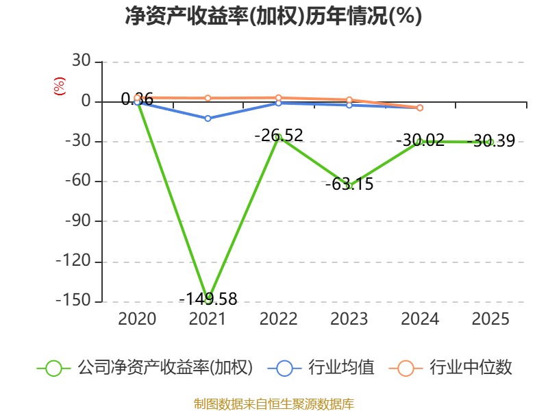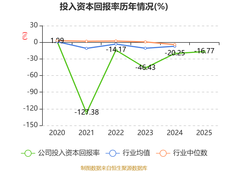 数据显示,2025年公司加权平均净资产收益率为-30.39%,较上年同期下降0.37个百分点。公司2025年投入资本回报率为-16.77%,较上年同期上升3.48个百分点。
