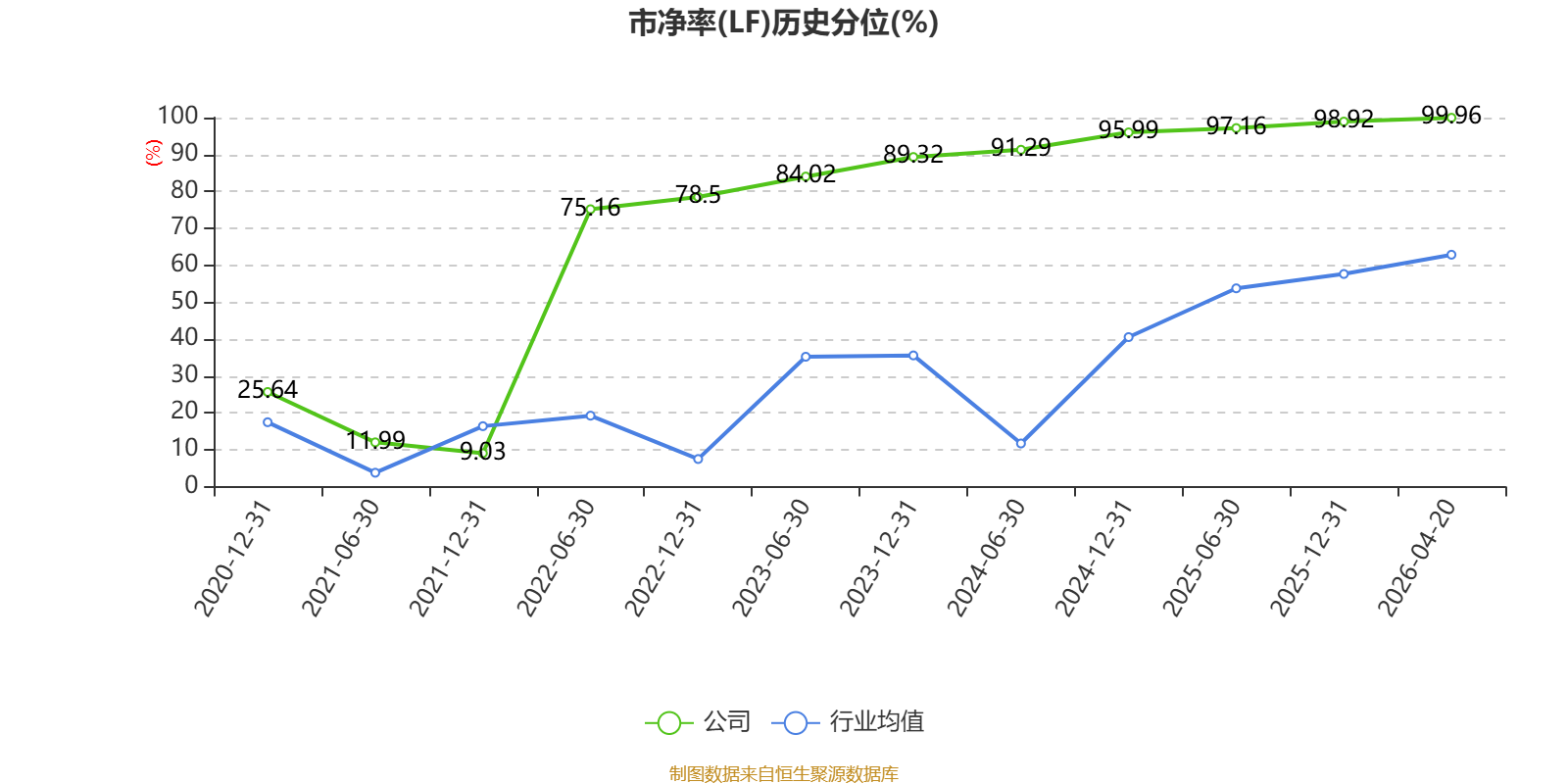 市盈率、市净率为负时,不显示当期分位数,会导致折线图中断。