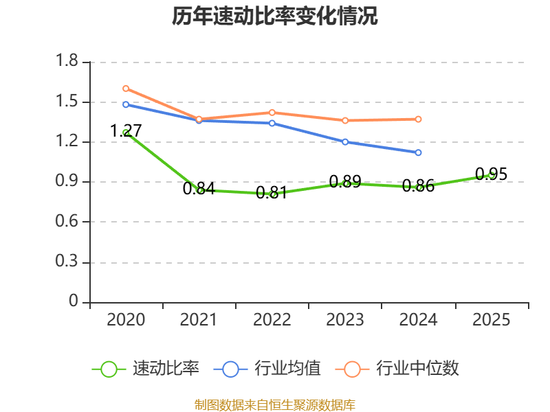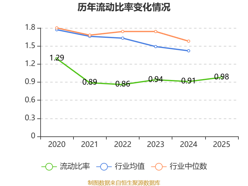 2025年,公司流动比率为0.98,速动比率为0.95。