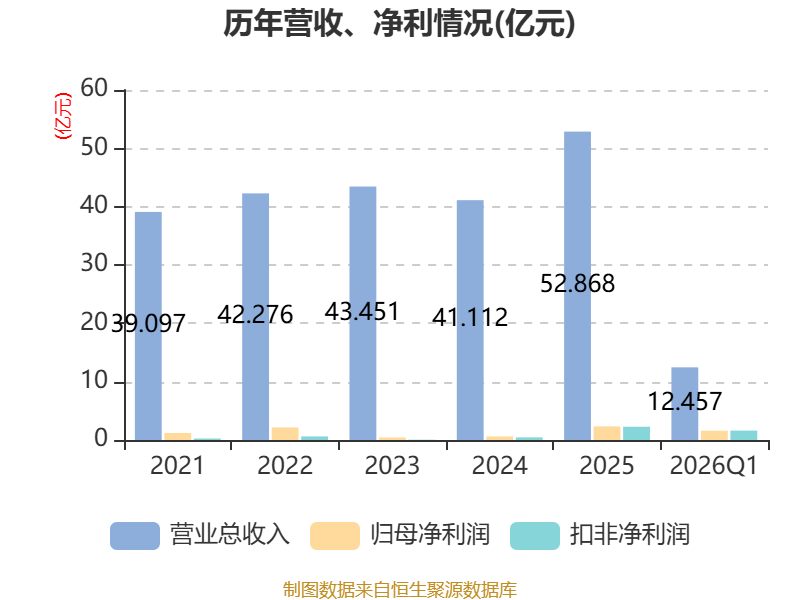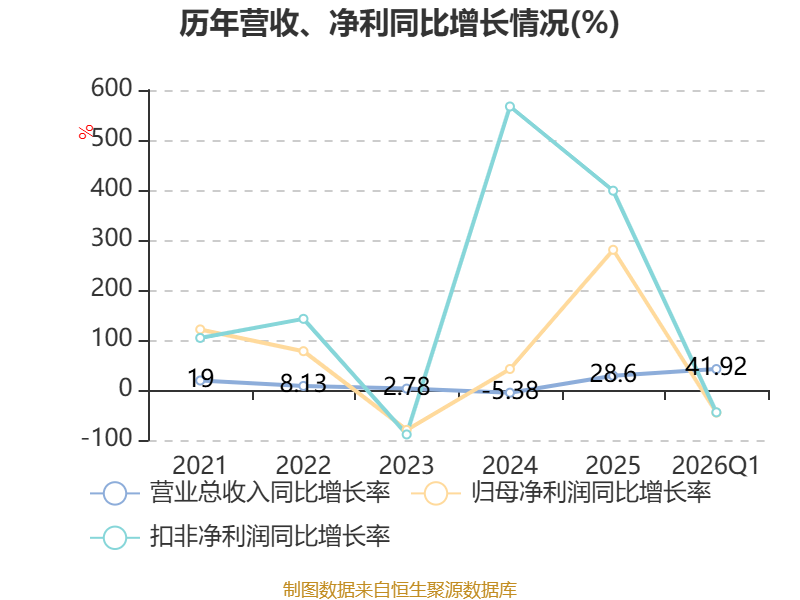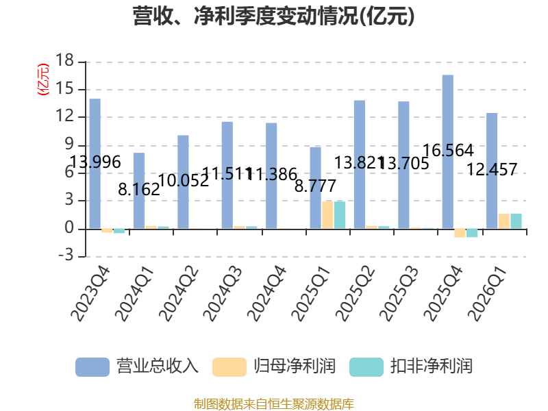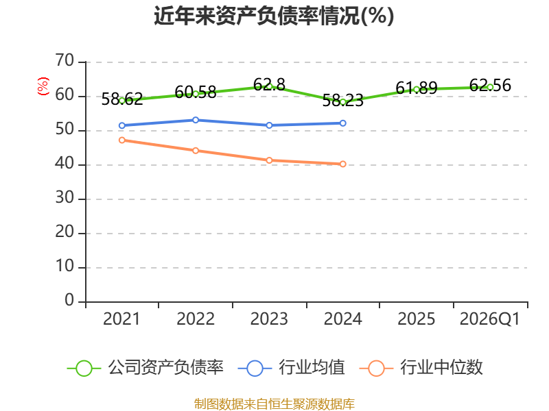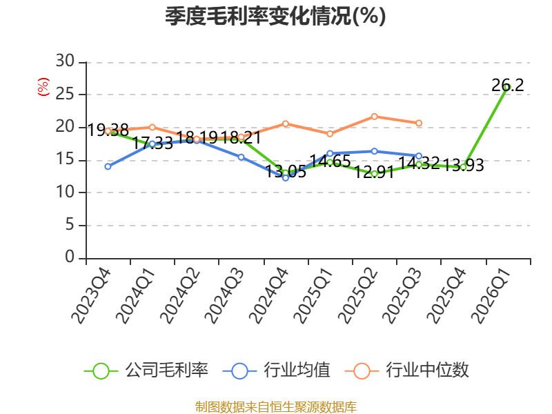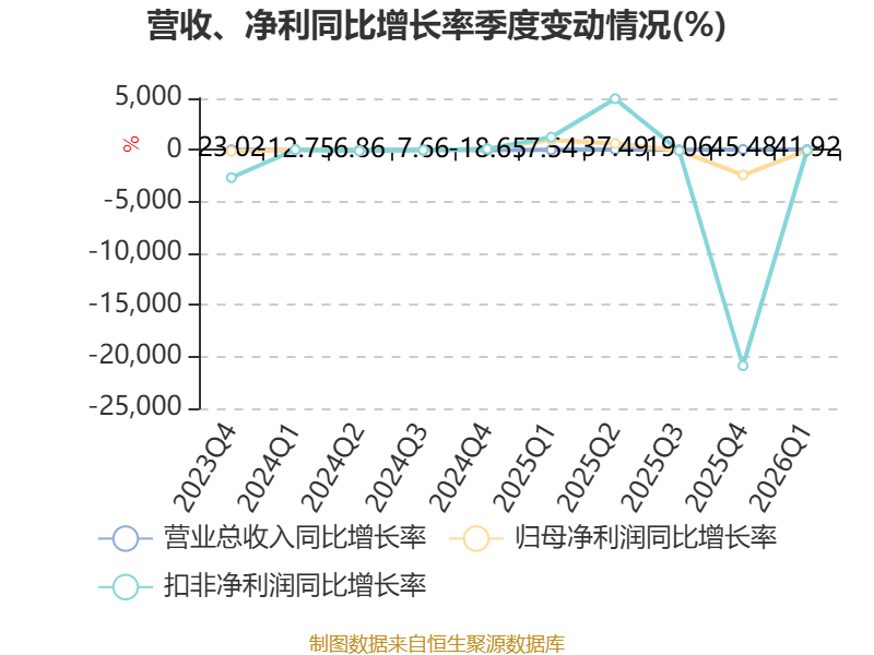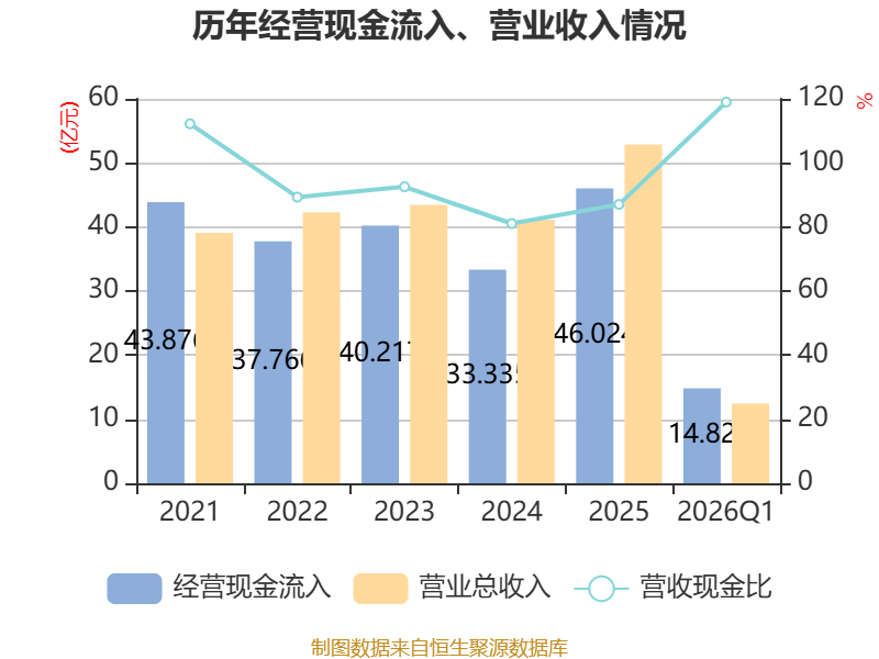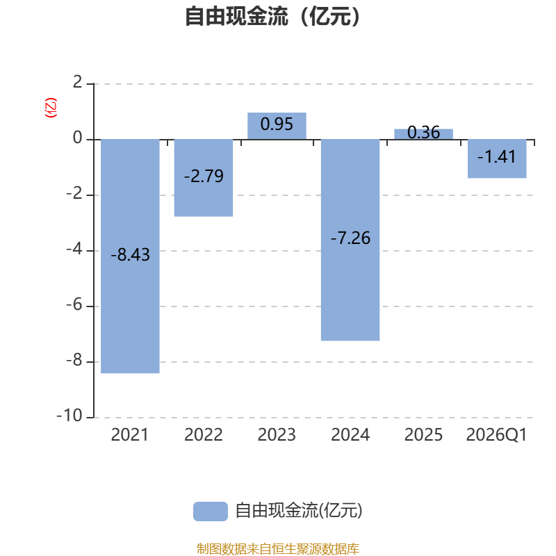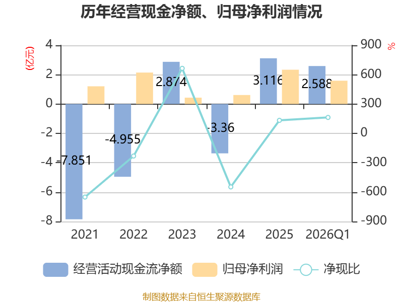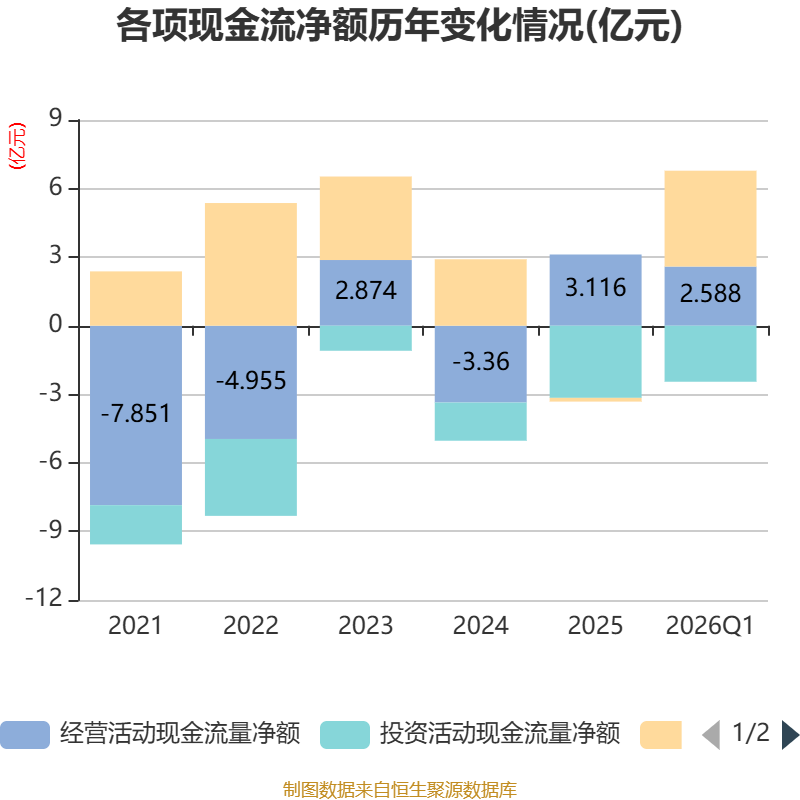 截至2026年一季度末,公司经营活动现金流净额为2.59亿元,同比下降17.9%;筹资活动现金流净额4.19亿元,同比增加3.07亿元;投资活动现金流净额-2.45亿元,上年同期为-1.1亿元。
