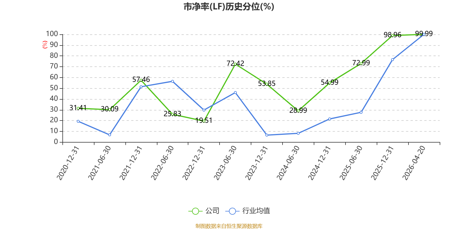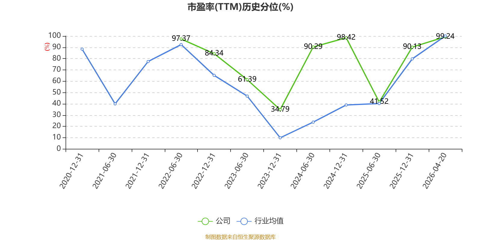 市盈率、市净率为负时,不显示当期分位数,会导致折线图中断。