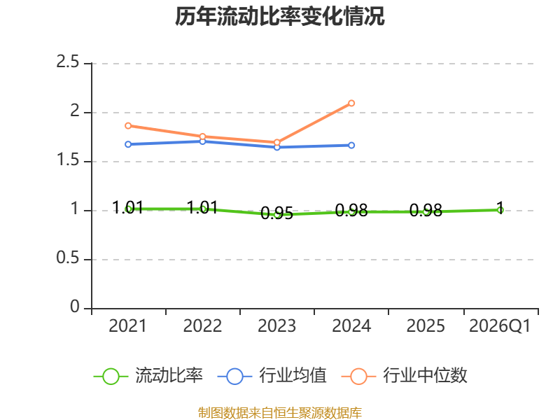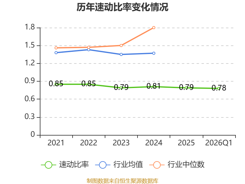 2026年第一季度,公司流动比率为1,速动比率为0.78。