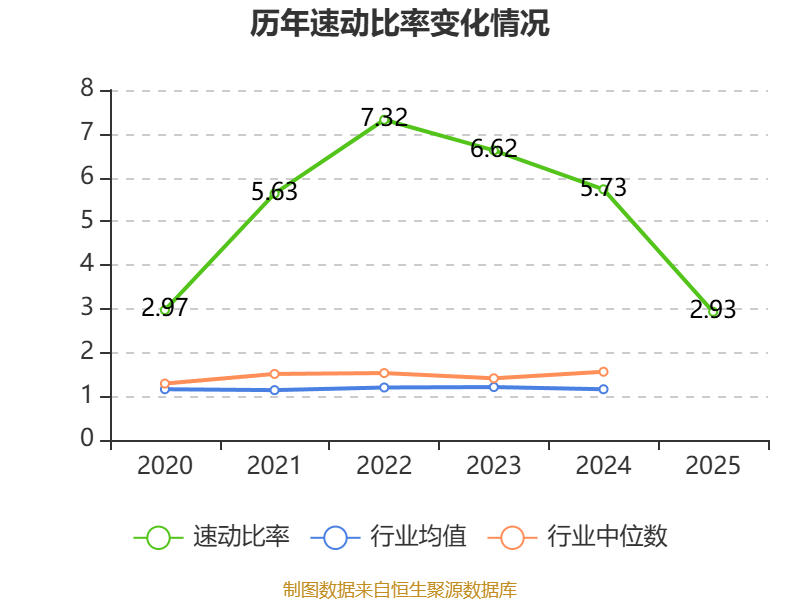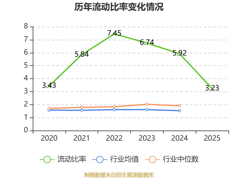 2025年,公司流动比率为3.23,速动比率为2.93。