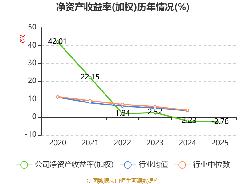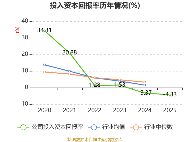 数据显示,2025年公司加权平均净资产收益率为-2.78%,较上年同期下降0.55个百分点。公司2025年投入资本回报率为-4.33%,较上年同期下降0.96个百分点。