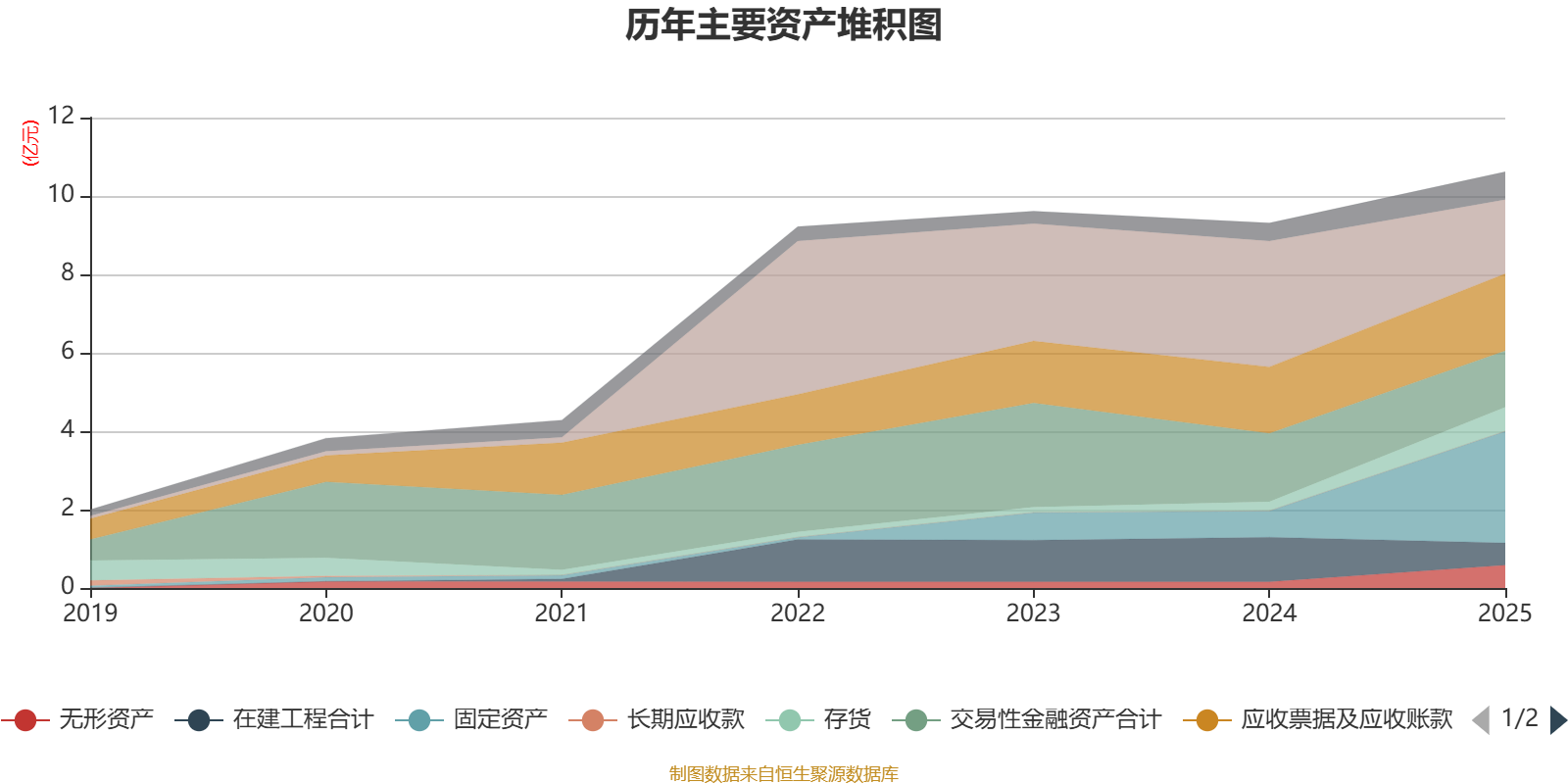 资产重大变化方面,截至2025年末,公司固定资产较上年末增加321.58%,占公司总资产比重上升19.59个百分点;货币资金较上年末减少41.15%,占公司总资产比重下降16.68个百分点;在建工程合计较上年末减少50.1%,占公司总资产比重下降6.87个百分点;交易性金融资产合计较上年末减少17.29%,占公司总资产比重下降5.14个百分点。