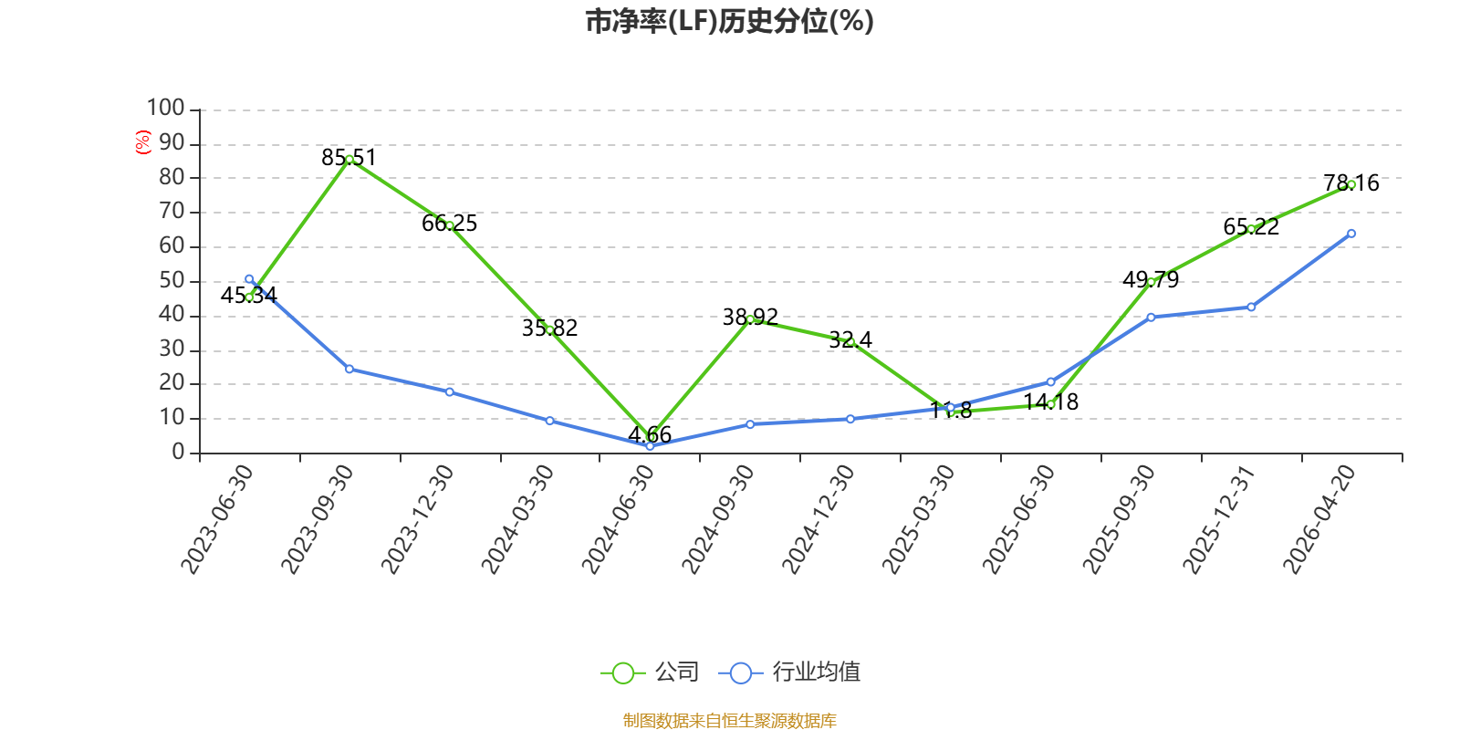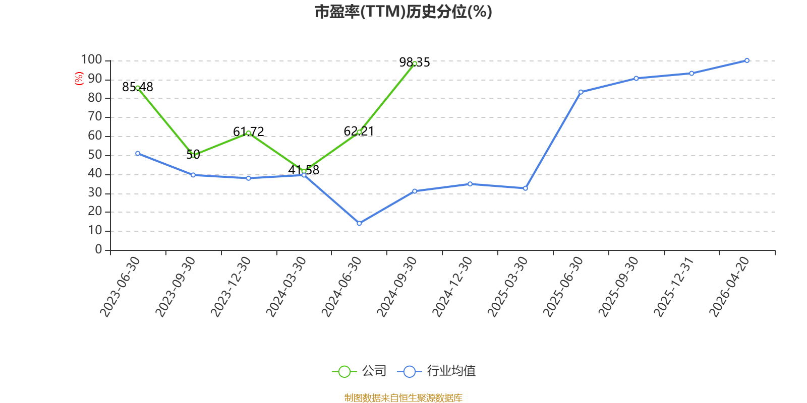 市盈率、市净率为负时,不显示当期分位数,会导致折线图中断。