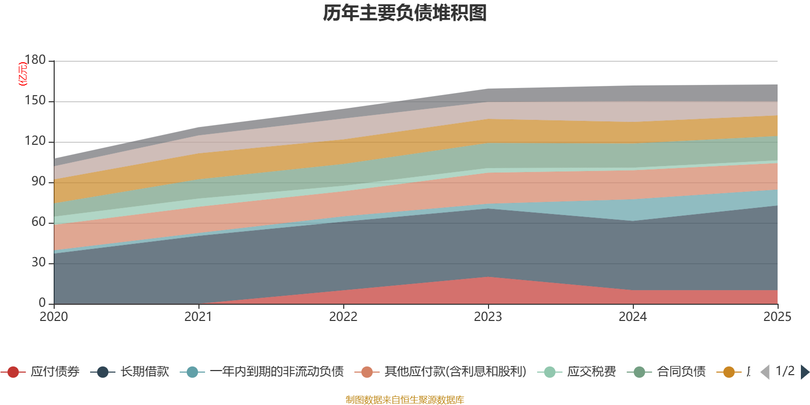 负债重大变化方面,截至2025年末,公司长期借款较上年末增加22.35%,占公司总资产比重上升2.7个百分点;短期借款较上年末减少32.06%,占公司总资产比重下降1.49个百分点;一年内到期的非流动负债较上年末减少26.43%,占公司总资产比重下降1.3个百分点;其他应付款(含利息和股利)较上年末减少8.91%,占公司总资产比重下降0.71个百分点。