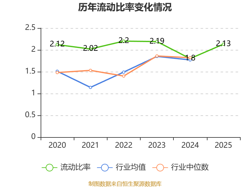2025年,公司流动比率为2.13,速动比率为0.82。