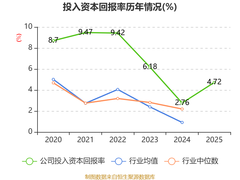 数据显示,2025年公司加权平均净资产收益率为7.11%,较上年同期上升2.65个百分点。公司2025年投入资本回报率为4.72%,较上年同期上升1.96个百分点。
