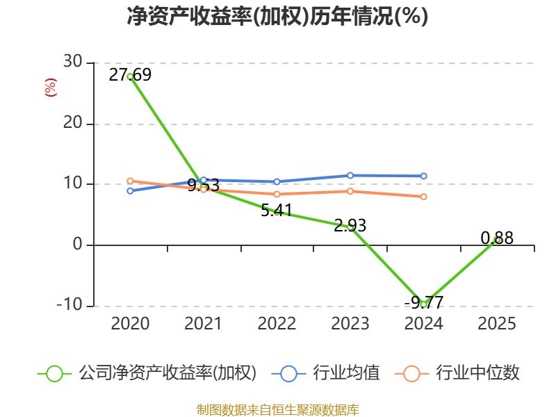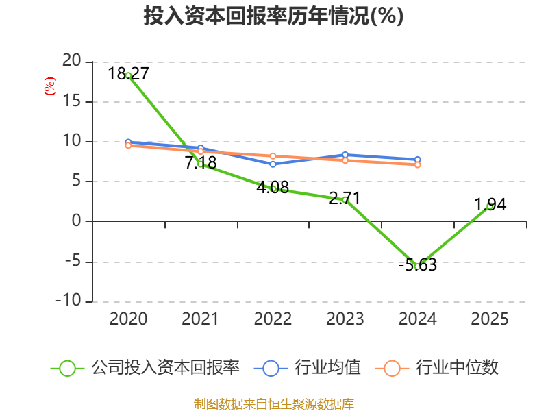 数据显示,2025年公司加权平均净资产收益率为0.88%,较上年同期上升10.65个百分点。公司2025年投入资本回报率为1.94%,较上年同期上升7.57个百分点。