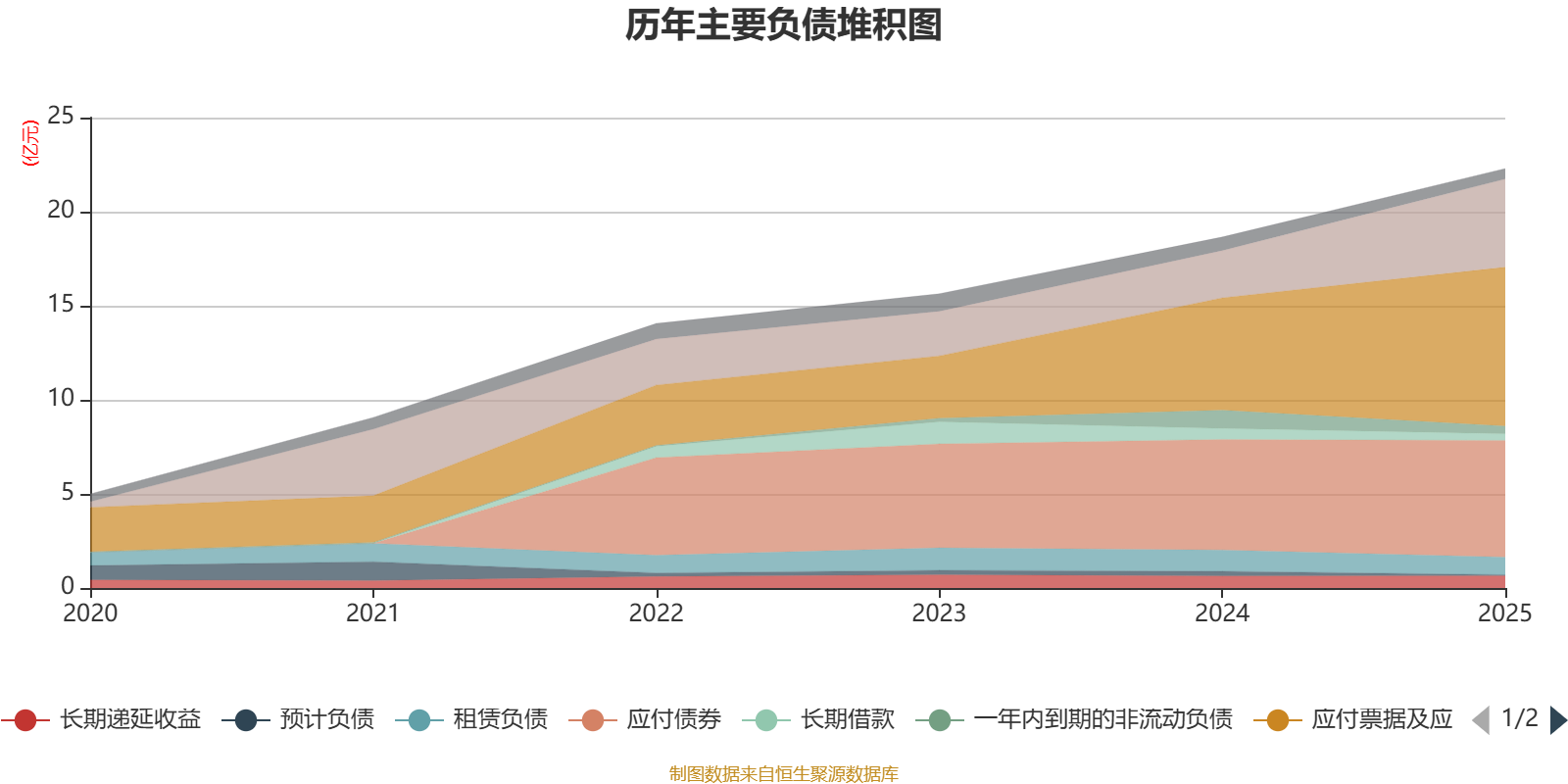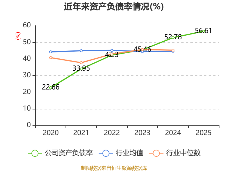 负债重大变化方面,截至2025年末,公司短期借款较上年末增加86.62%,占公司总资产比重上升4.79个百分点;应付票据及应付账款较上年末增加41.39%,占公司总资产比重上升4.55个百分点;一年内到期的非流动负债较上年末减少57.17%,占公司总资产比重下降1.7个百分点;应付债券较上年末增加5.56%,占公司总资产比重下降0.87个百分点。