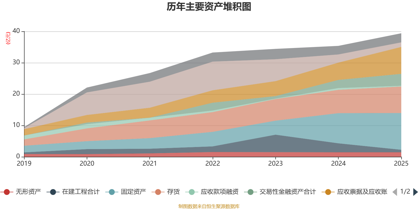 资产重大变化方面,截至2025年末,公司应收票据及应收账款较上年末增加55.6%,占公司总资产比重上升6.2个百分点;在建工程合计较上年末减少72.29%,占公司总资产比重下降6.05个百分点;货币资金较上年末减少44.8%,占公司总资产比重下降3.73个百分点;固定资产较上年末增加21.61%,占公司总资产比重上升2.5个百分点。