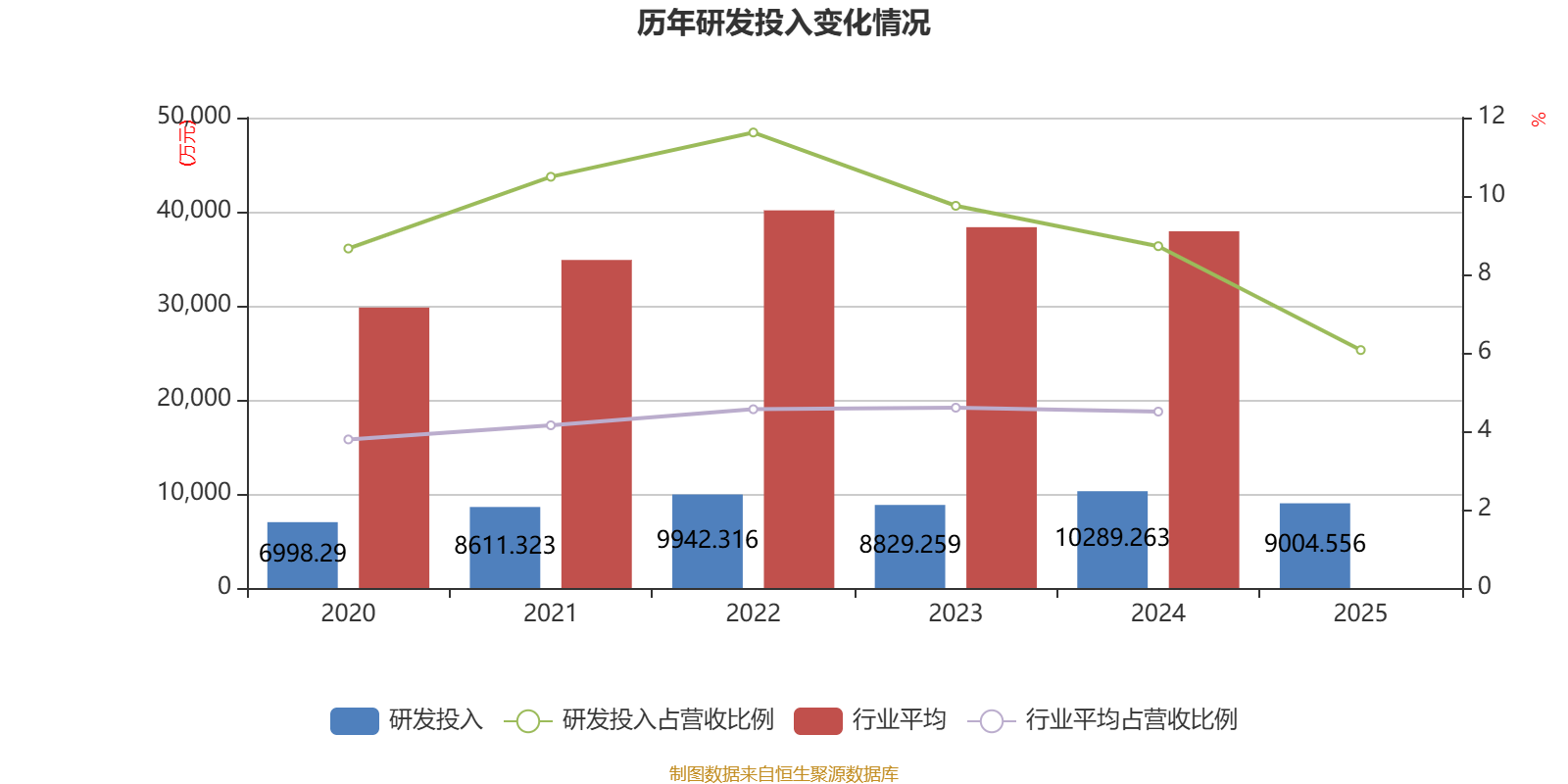 2025年全年,公司研发投入金额为9004.56万元,同比下降12.49%;研发投入占营业收入比例为6.07%,相比上年同期下降2.65个百分点。此外,公司全年研发投入资本化率为0%。