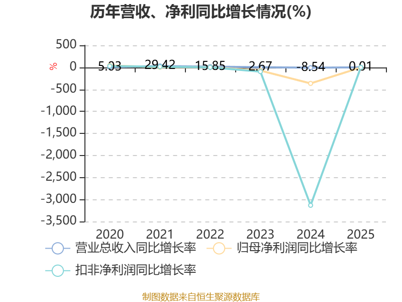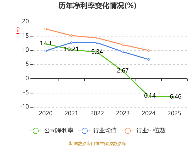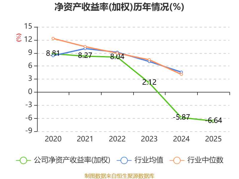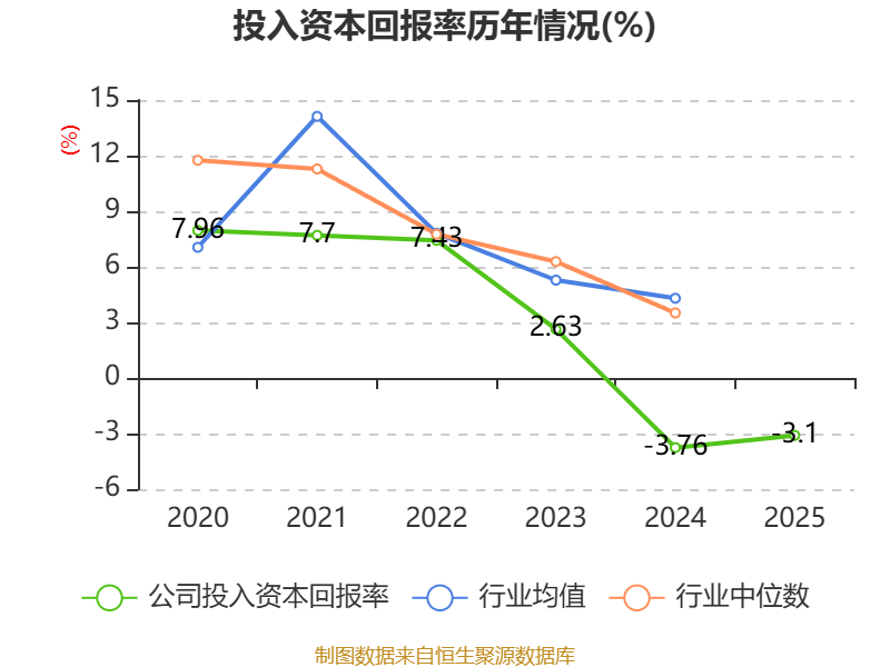数据显示,2025年公司加权平均净资产收益率为-6.64%,较上年同期下降0.77个百分点。公司2025年投入资本回报率为-3.1%,较上年同期上升0.66个百分点。