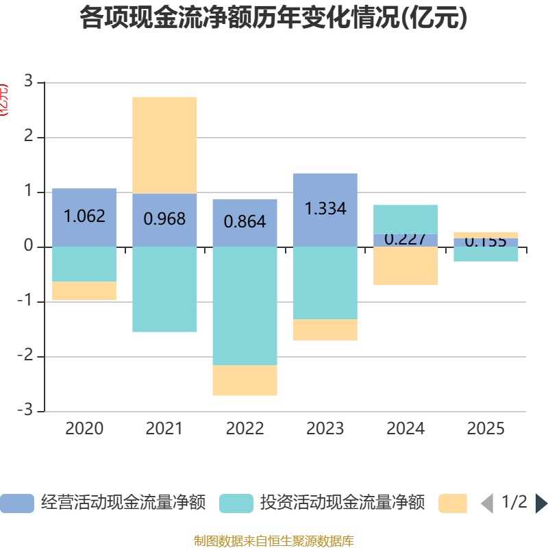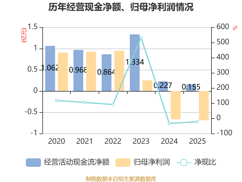 截至2025年,公司经营活动现金流净额为1550.6万元,同比下降31.72%;筹资活动现金流净额1065.14万元,同比增加8078.46万元;投资活动现金流净额-2708.67万元,上年同期为5328.83万元。