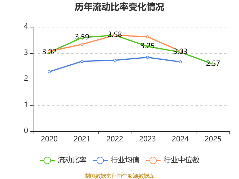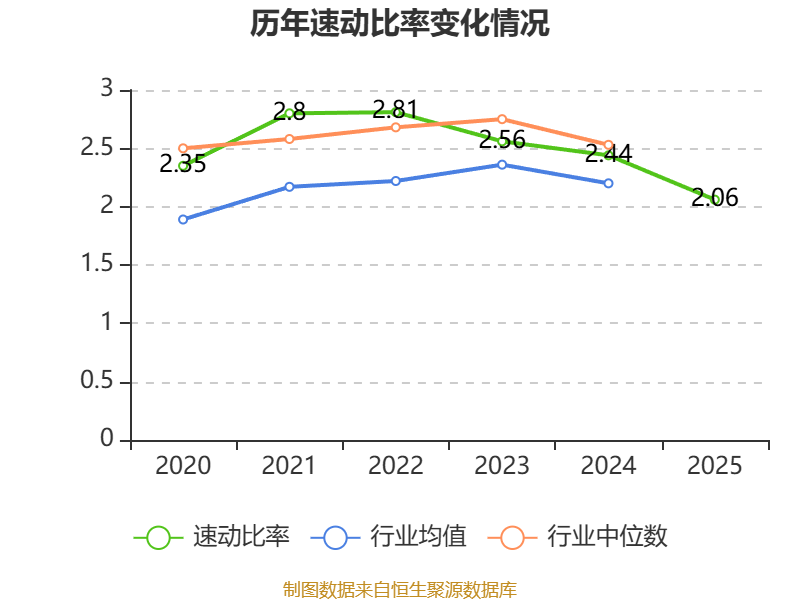 2025年,公司流动比率为2.57,速动比率为2.06。