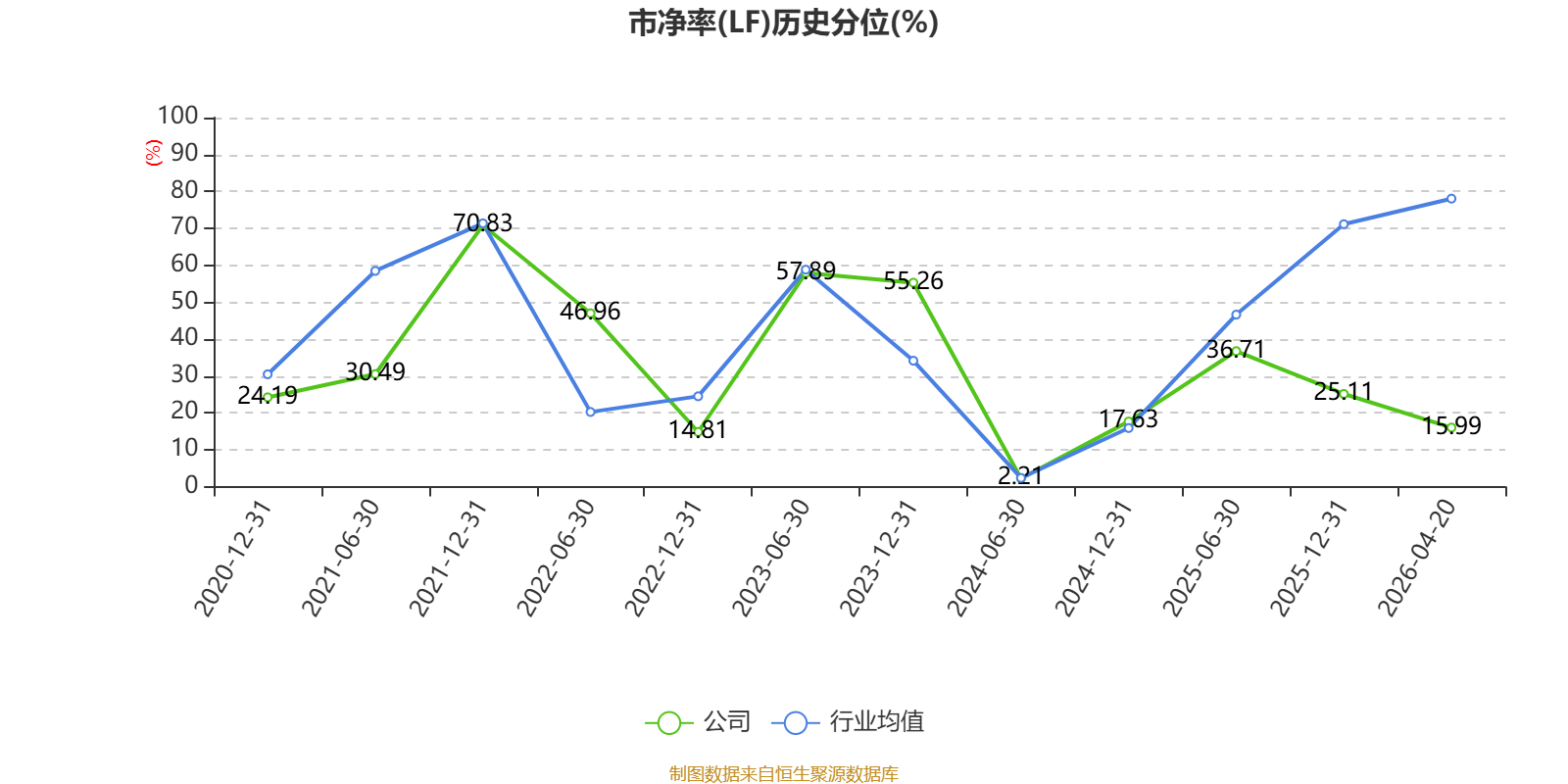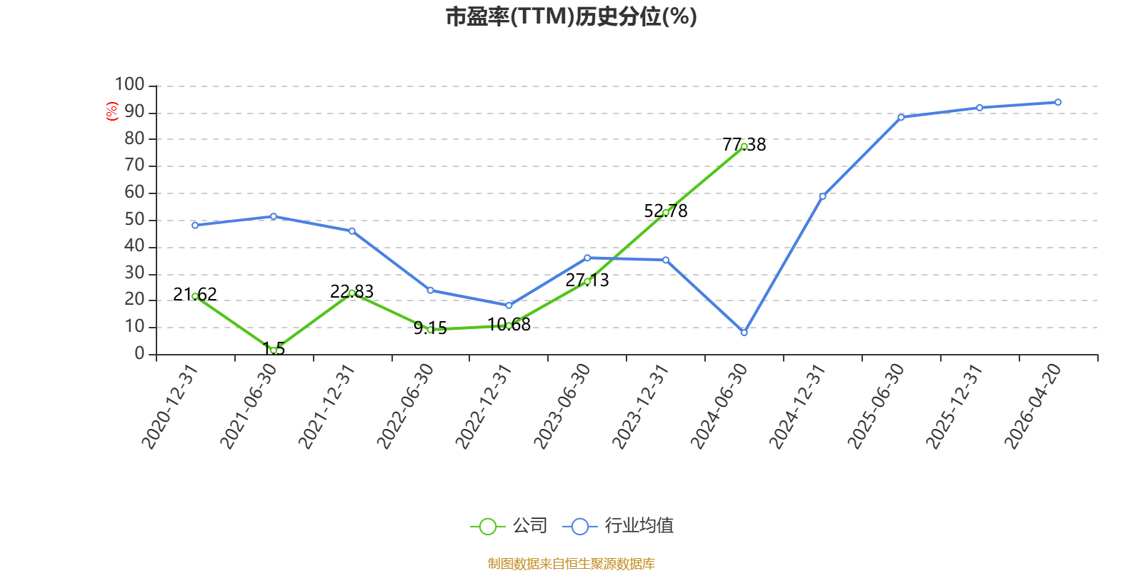 市盈率、市净率为负时,不显示当期分位数,会导致折线图中断。