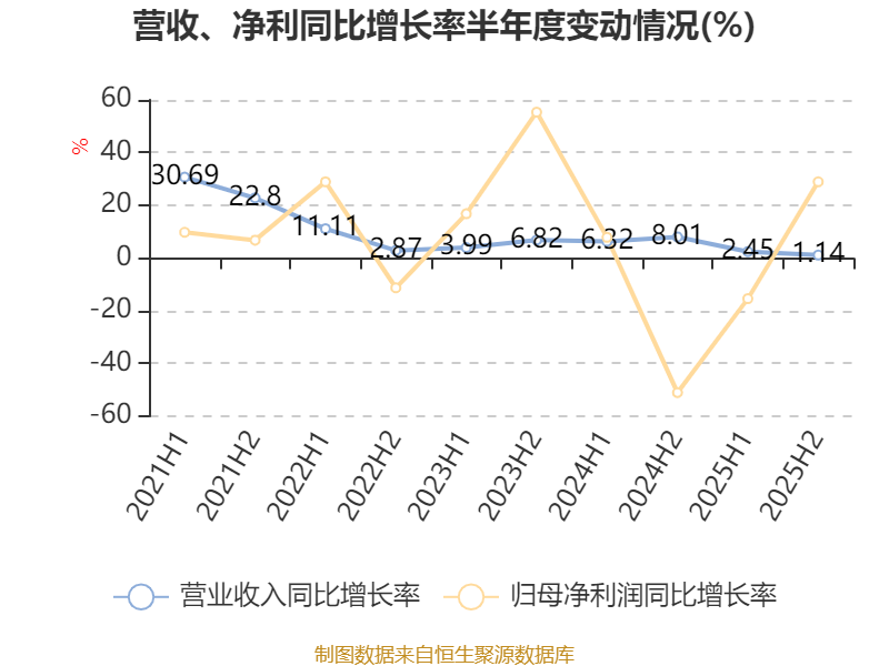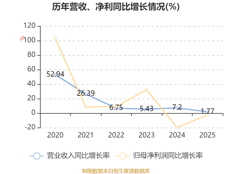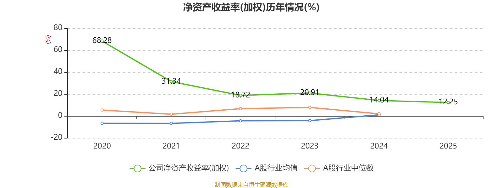 数据显示,2025年公司平均净资产收益率为12.25%,较上年同期下降1.79个百分点。