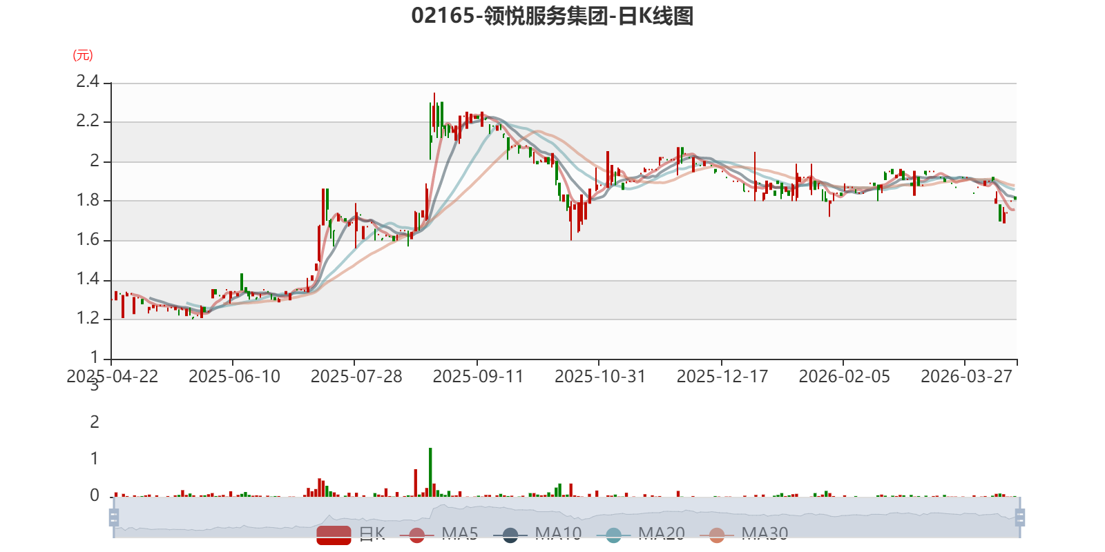 以4月20日收盘价计算,领悦服务集团目前市盈率(TTM)约5.88倍,市净率(TTM)约0.67倍,市销率(TTM)约0.7倍。