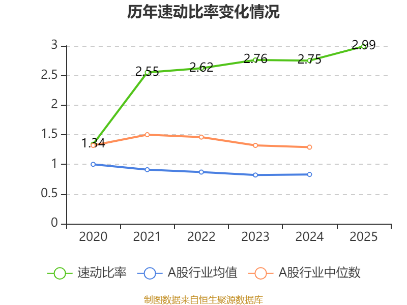 2025年,公司流动比率为3.01,速动比率为2.99。