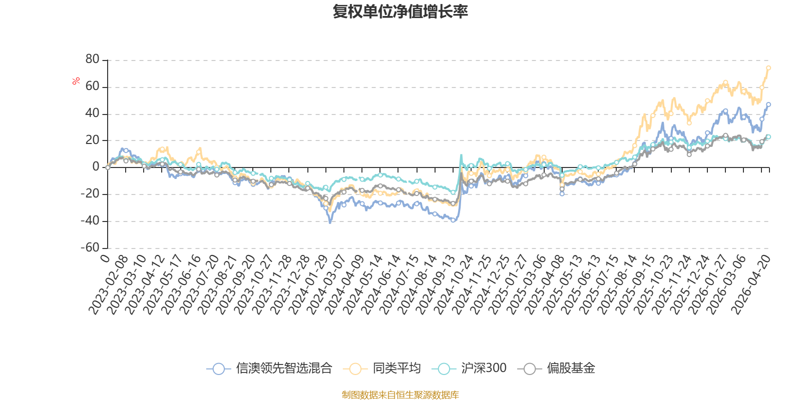 截至4月20日,信澳领先智选混合近三个月复权单位净值增长率为5.86%,位于同类可比基金117/229;近半年复权单位净值增长率为22.23%,位于同类可比基金120/229;近一年复权单位净值增长率为68.95%,位于同类可比基金123/229;近三年复权单位净值增长率为47.43%,位于同类可比基金94/172。