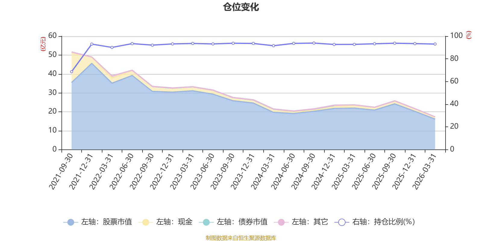 据定期报告数据统计,近三年平均股票仓位为93.21%,同类平均为86.94%。2024年三季度末基金达到93.92%的最高仓位,2021年三季度末最低,为68.65%。