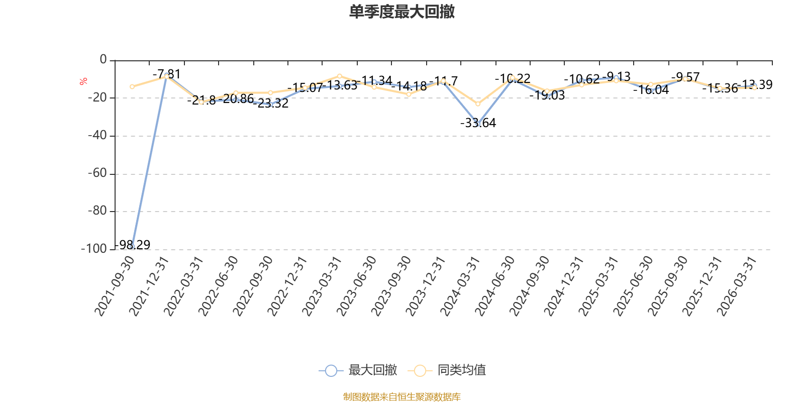 截至4月20日,基金近三年最大回撤为42.15%,同类可比基金排名85/169。单季度最大回撤出现在2021年三季度,为98.29%。