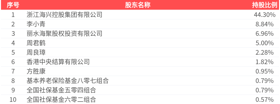 公司股东户数为2.00万户,前十大股东持股数量为3.52亿股,占总股本比例为72.29%,前十大股东持股情况如下: