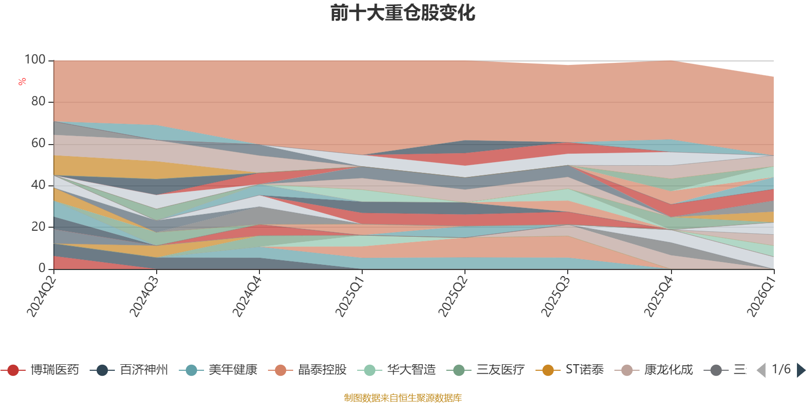 该基金持股集中度较高。截至2026年一季度末,基金十大重仓股分别是映恩生物-B、泽璟制药、昭衍新药、药明合联、海思科、必贝特、三生制药、泰格医药、前沿生物、苑东生物。